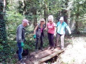 The Sunday work party opened up paths and made a bridge to cross one of the many ditches.